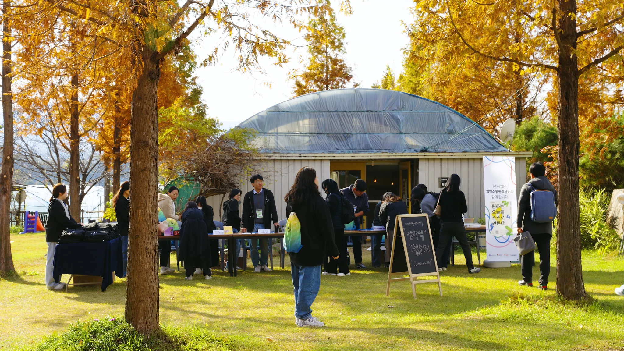 아름답게 단풍이 든 밀양의 캠프프레이저스라는 공간에서 진행된 입학식은 학과별 접수로 시작되었습니다. 내가 참여할 학과를 진행해 줄 강사와 코치들이 접수를 받으며 인사를 나눴습니다. 요즘 대학에서는 입학생들에게 학교생활에 필요한 입학 키트를 전달해 주더라고요. 밀양은대학에서도 신입생들에게 필요한 유용하고 예쁜 선물들을 전달했습니다.