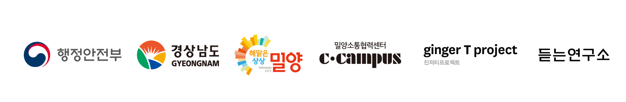 밀양소통협력센터는 2023년부터 2024년까지 행정안전부-경상남도-밀양시가 함께 진행하는 지역거점별 소통협력공간 조성사업으로 만들어졌습니다. 사업운영을 맡은 지역기획사 (주)공유를위한창조는 밀양의 사람과 자원을 연결하며 로컬브랜딩, 지역문제 해결을 통해 지역의 새로운 변화와 성장을 만들어가려 합니다.