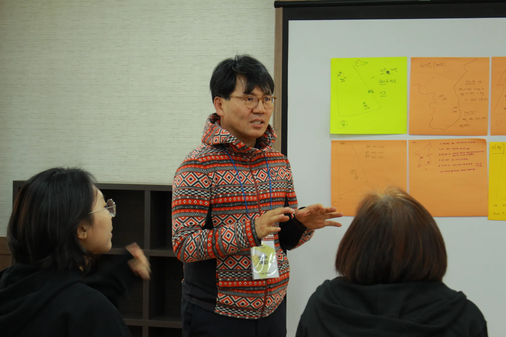 유마담(협동조합 청풍)과 톨(밀양소통협력센터)의 추천 책, ‘호명사회’와 ‘우리가 소멸하는 방법’에서 나에게 와 닿는 문장을 찾고, 함께 이야기하는 시간으로 아침을 열었습니다. 이후에는 내가 살았던, 이주했던 지역에서의 이야기를 작은 지도로 그려보고 나누면서 나에게 지역이란 어떤 존재인지 돌아보는 시간을 가졌습니다.
