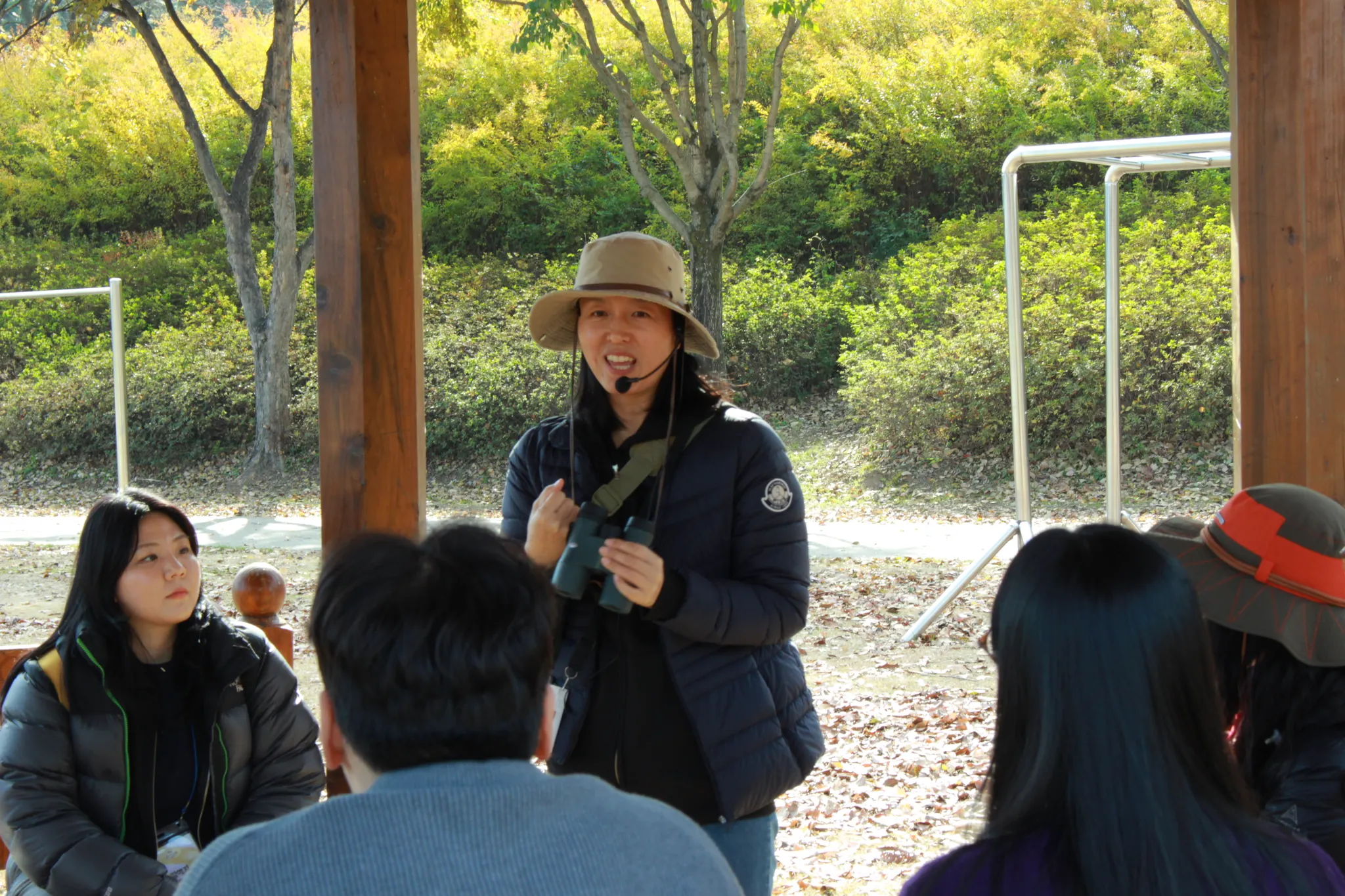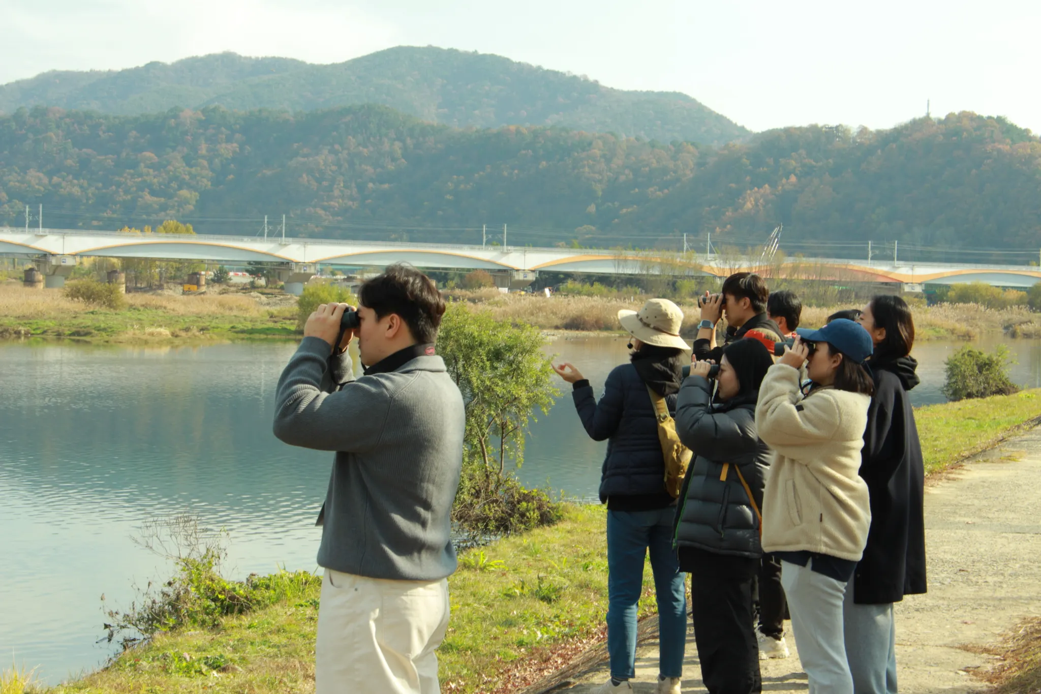 연결기획학과에는 밀양 토박이부터, 서울, 부산, 김해 등 다양한 지역에서 온 학생들이 함께하고 있는데요. 밀양의 시내를 가로질러 흐르는 밀양강을 걸으며, 앞으로 우리가 연결실험을 펼칠 이곳 밀양과 자연스럽게 만나는 시간을 가졌습니다. 밀양강생태문화연구회 버찌(이영란) 선생님의 소개로 밀양강 구석구석에 살거나 머무는 새들과도 인사하는 시간이었습니다.