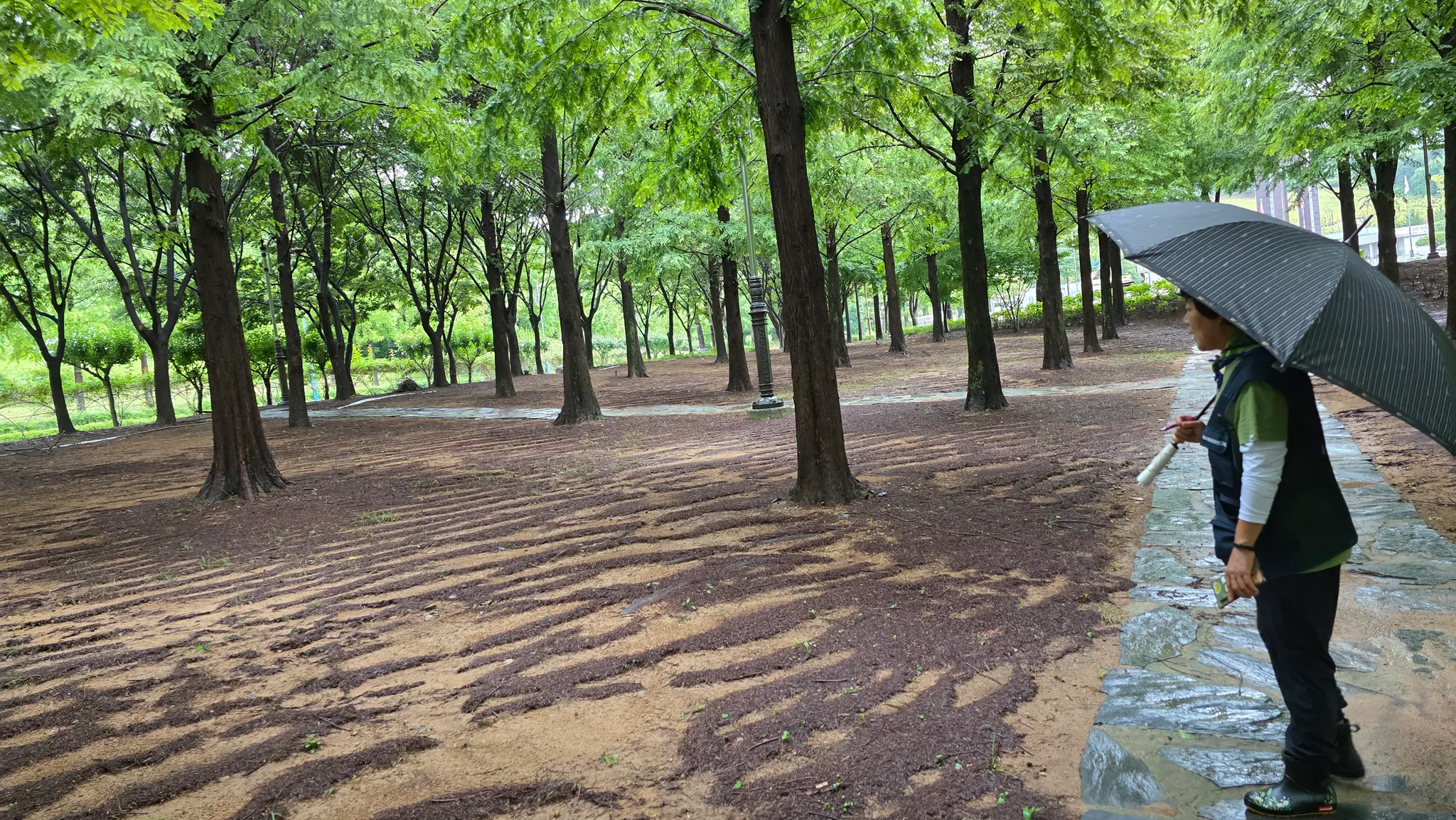 아리랑대공원은 도심 가까이에 있으면서도 생태적인 휴식처로서의 기능을 잘 수행하는 곳입니다. 잔디밭과 연못, 산책로 사이로 다양한 나무와 풀꽃이 어우러져 있었고, 특히 수생식물이 자라는 작은 연못 주변에는 비가 오는 날씨에도 불구하고 많은 잠자리들을 볼 수 있었습니다. 키카 큰 메타쉐콰이어 나무들을 자세히 들여다 보면 매미 탈피각을 쉽게 발견할 수 있습니다. 또한, 잘 관리된 공원의 가장자리를 기웃거리다 보면, 잘리지 않은 풀밭에서 폴짝폴짝 뛰는 곤충들을 쉽게 만날 수 있답니다. 아이들과 함께라면, 곤충을 만나러 대공원으로 가보시길 권해드려요.