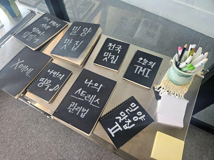 마지막으로 홀딱홀짝 팀은 항일운동거리를 소풍한 뒤, 연결기획학과를 졸업하신 선배님이 직접 운영하시는 루327 카페를 방문했는데요. 카페에 있는 밀양에 대한 정보 노트를 참고하면서 청년활동가 네트워크의 인적 자원과 공간 자원을 발견했다고 합니다. 팀원 간 의견 공유를 통해 앞으로는 청년과 중장년층이 서로 소통할 수 있는 편지 플랫폼을 루327 카페를 활용해 열어보고자 하는 아이디어도 나눠주셨는데요.