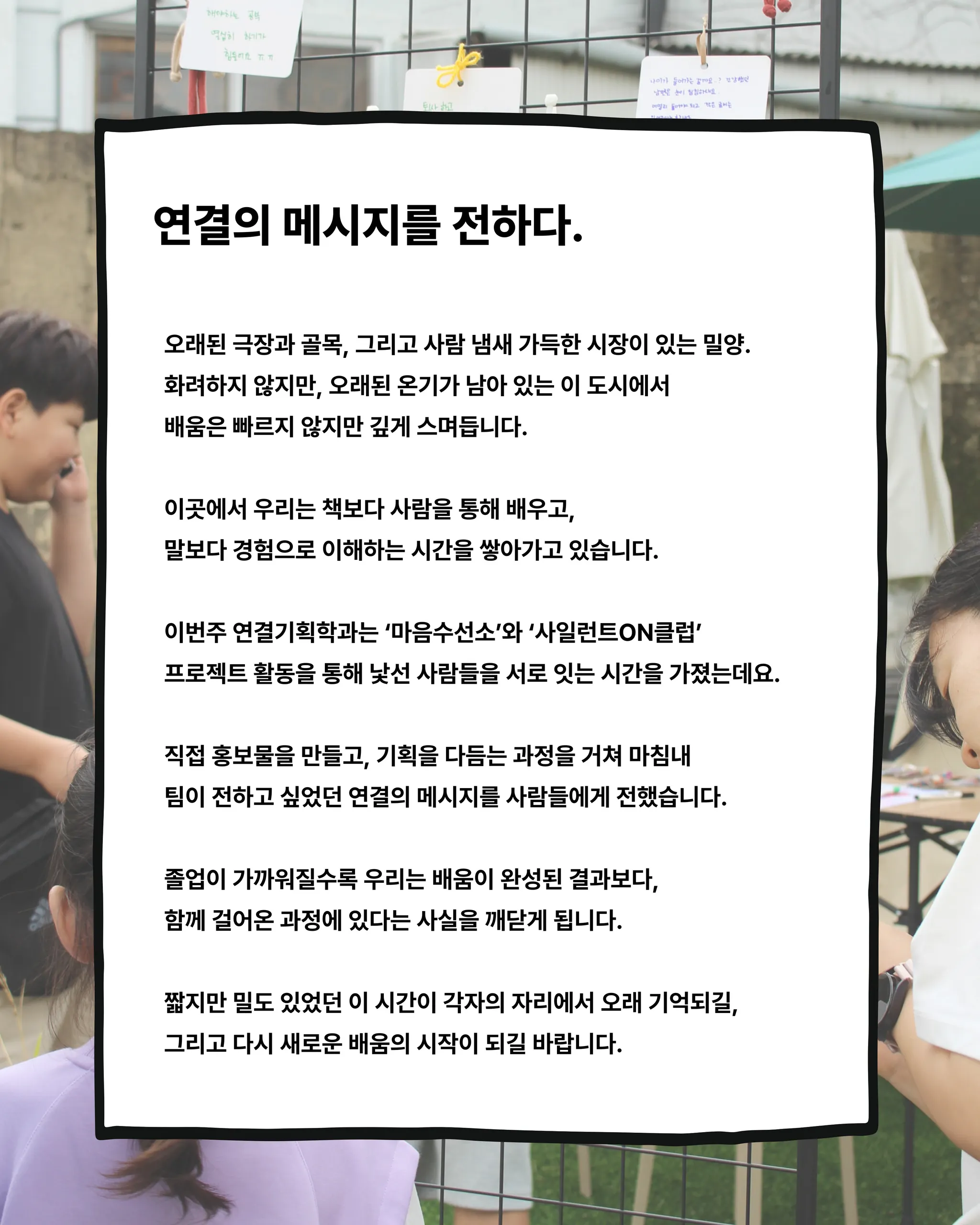 연결기획학과의 연결 프로젝트는 11월 초까지 이어지니, 프로젝트에 함께 참여해보셔요!