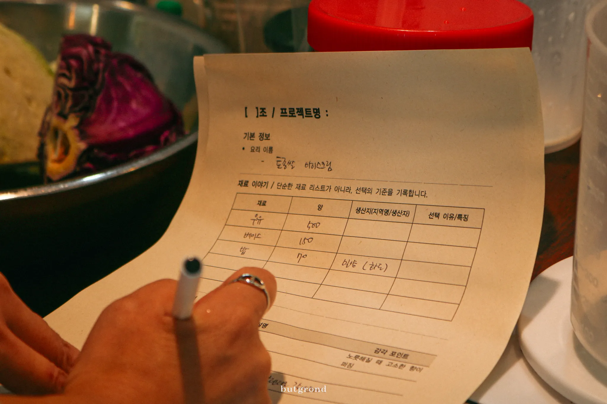 교환학생 시간이 끝나고, 생태미식학과 벗님들이 다시 옹기종기 모였습니다. 우리가 함께 만든 로컬 플레이트를 다른 학과의 벗님들과 나누고 싶다는 마음으로, 몇 가지 메뉴를 그 자리에서 직접 만들어 함께 맛보는 시간을 가졌어요.