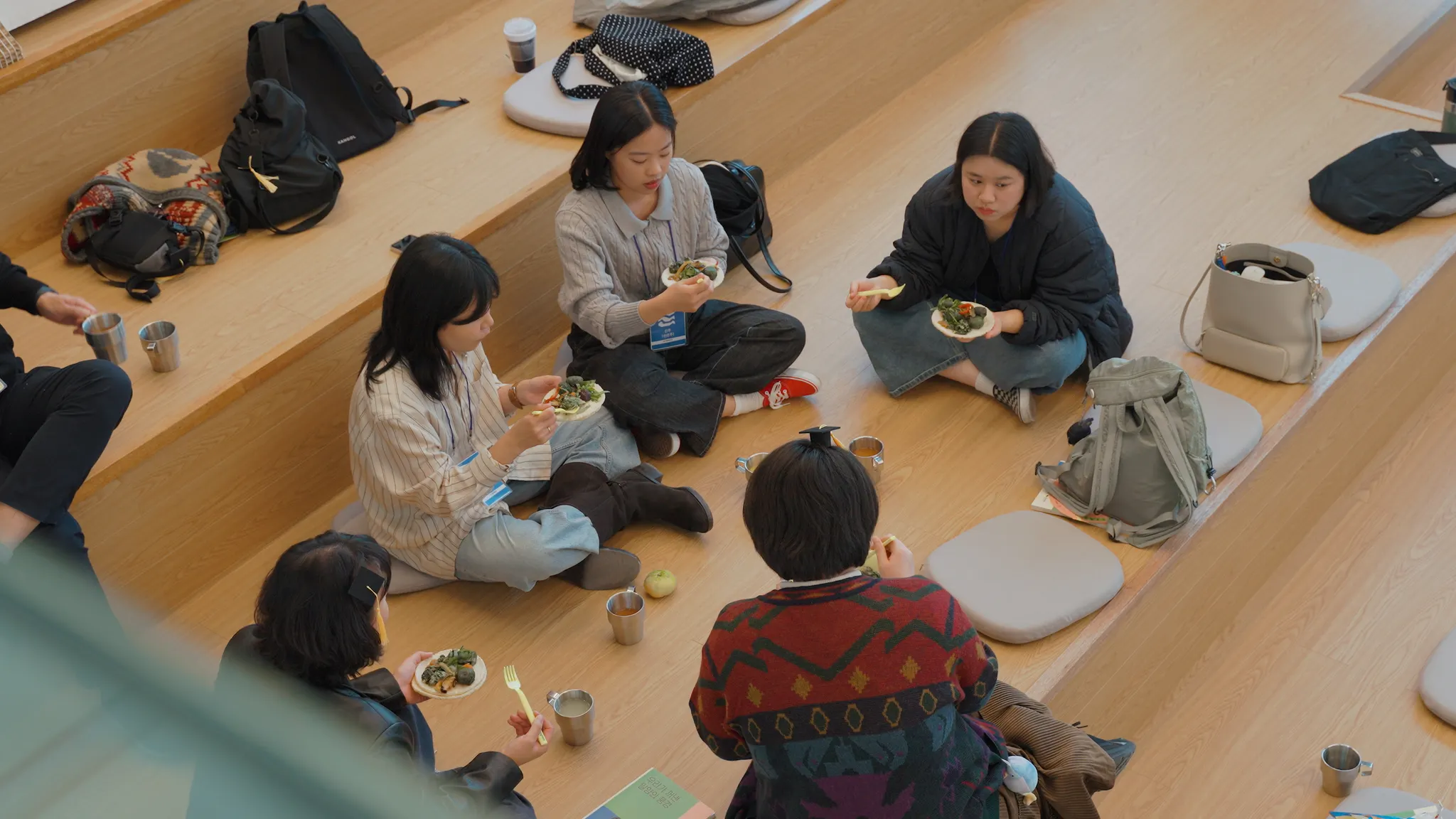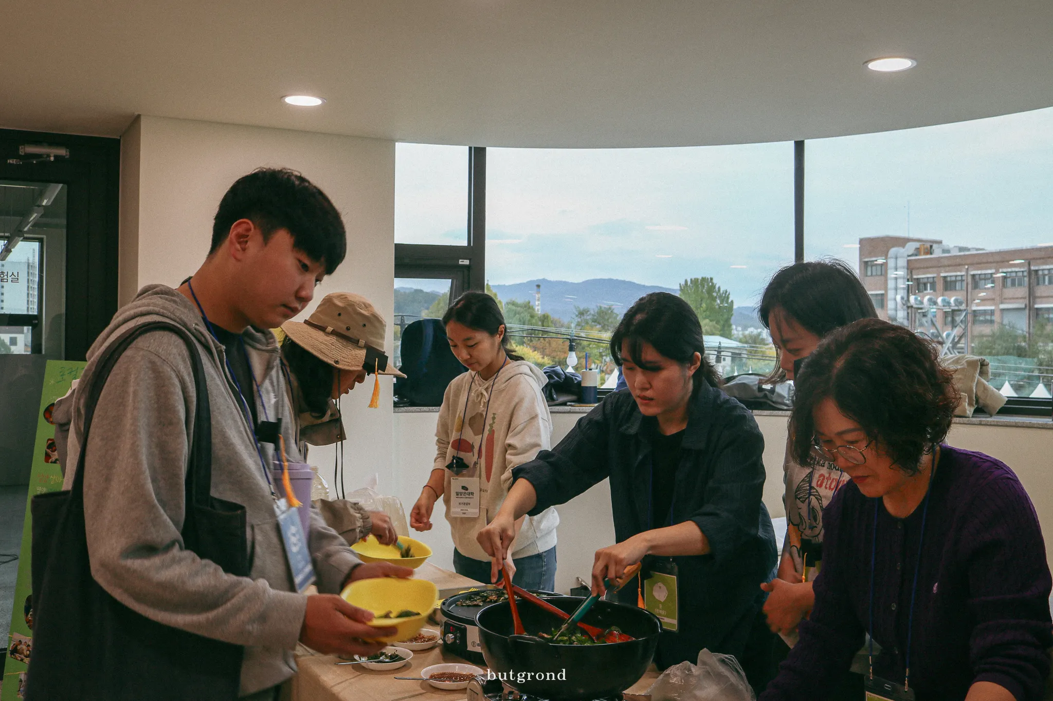 깻잎 주먹밥과 표고 볶음, 깻잎 떡볶이, 된장 소스를 곁들인 깻잎 전, 쌀 젤라또 등 맛있는 음식을 함께 나누며, 생태미식학과의 배움이 생생한 맛과 온기로, 대화와 웃음으로 이어지는 쉬는 시간이었습니다. 생태미식학과의 로컬 플레이트는 링크에서 자세히 살펴보실 수 있어요.